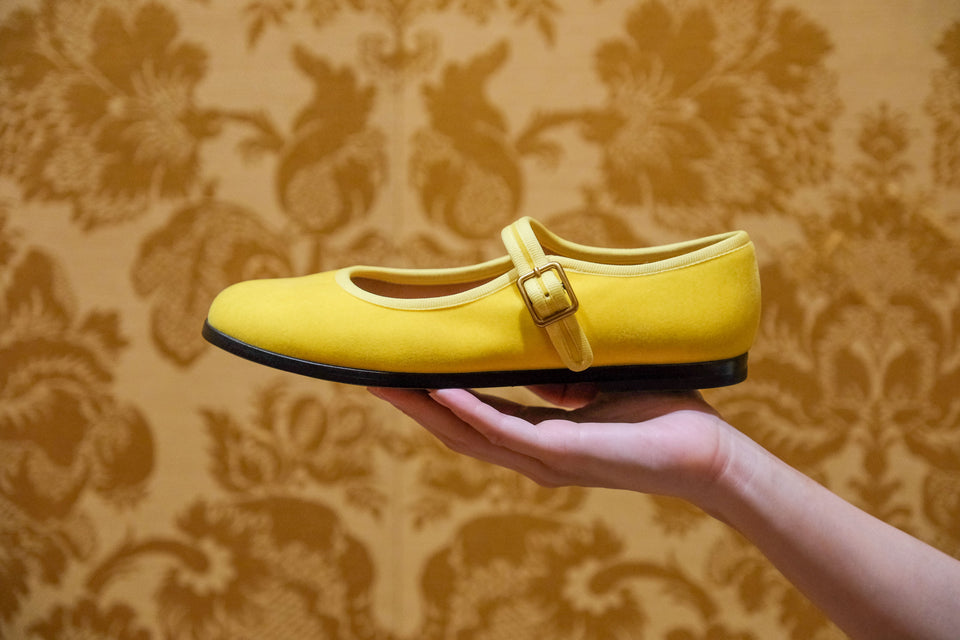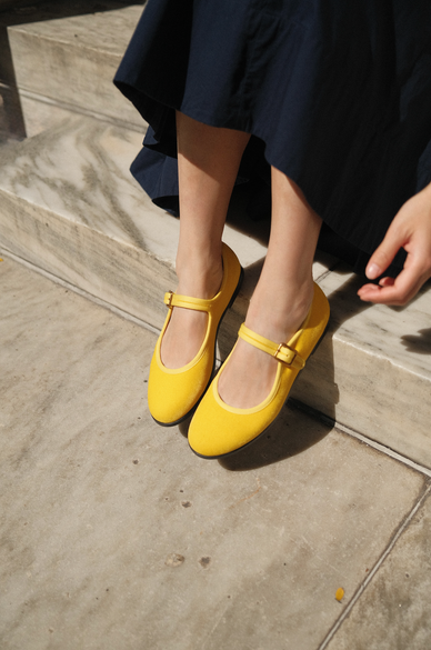 Our Mary Jane is a reinterpretation of the beloved classic. The warm yellow of the classic treat holds a place in our imagination and an elegant addition to elevate your daily wardrobe. The soft fabric and reinforced soles makes these practical and beautiful.