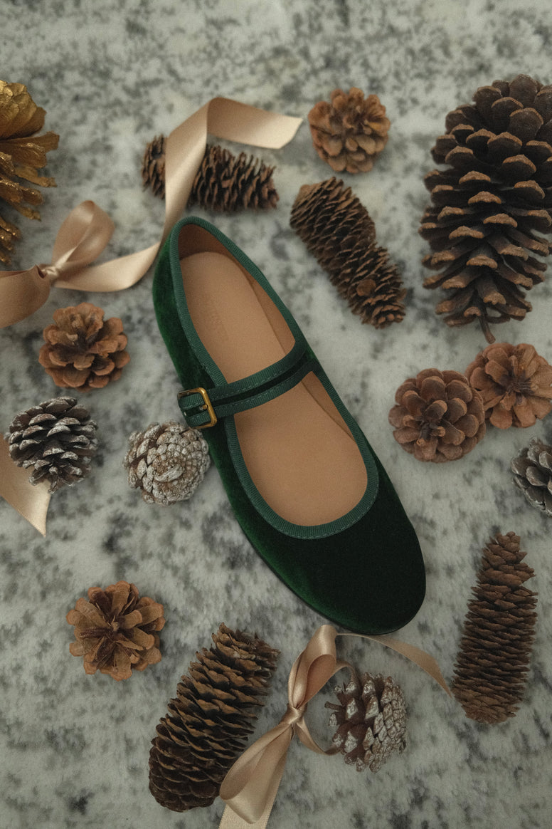 Our Mary Jane is a reinterpretation of the beloved classic. This deep green is a soft-spoken tribute to heritage and the Star Ferry floating across the harbour. The soft fabric and reinforced soles makes this practical as well as beautiful.